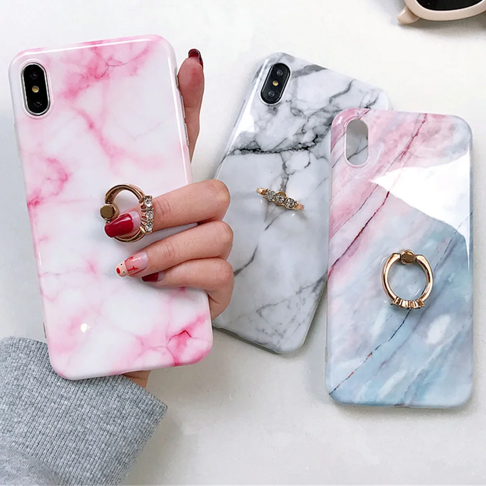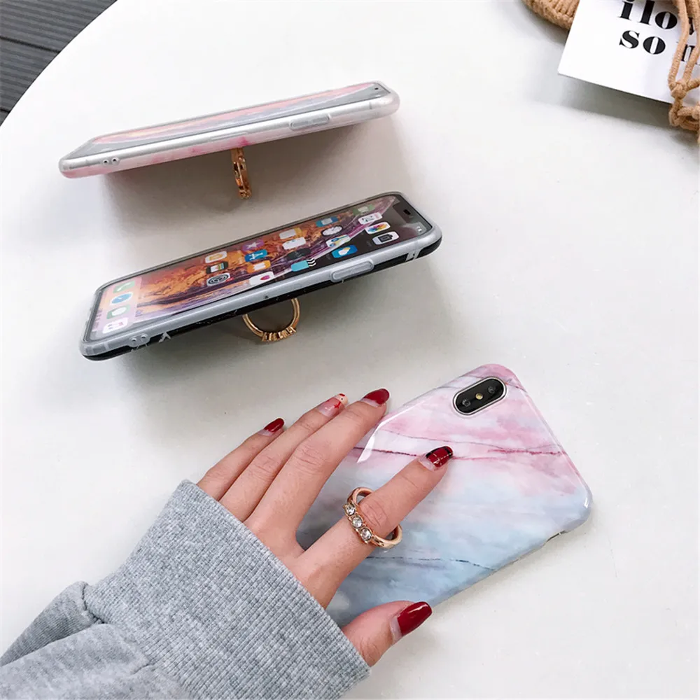 price reduction Finger Ring Holder Marble Phone Case For iphone X XR XS 11 Pro Max Case Silicone Soft Shell For iph