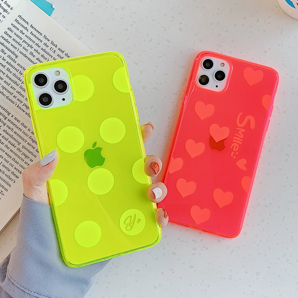 incredible LOVECOM Neon Fluorescent Solid Color Phone Case For iPhone 11 Pro Max XR X XS Max 7 8 Plus Case Sof